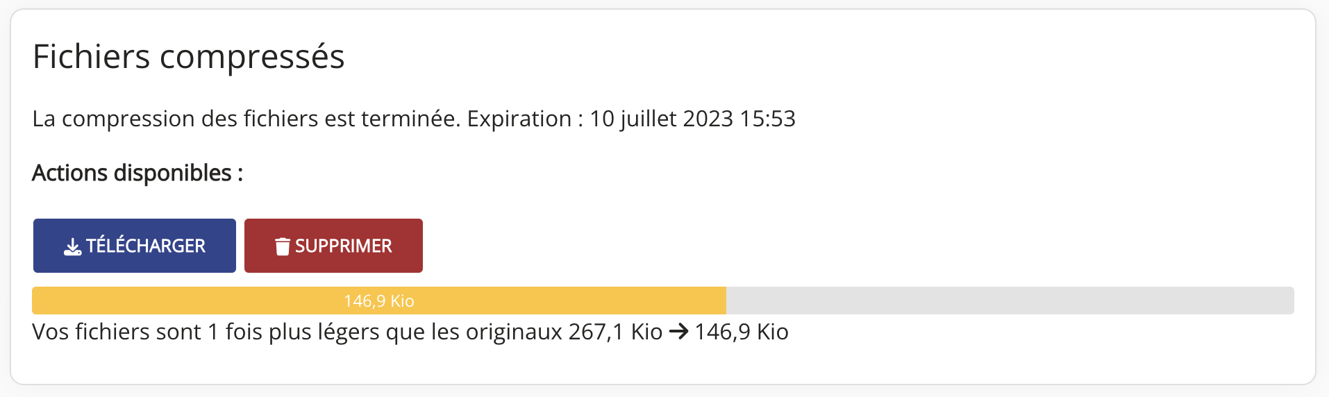 Si la compression est concluante, vous pouvez télécharger vos pdf comprimés